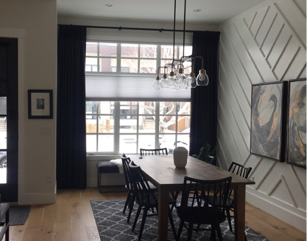Add drama to your space with double layer draperies and roman shades.